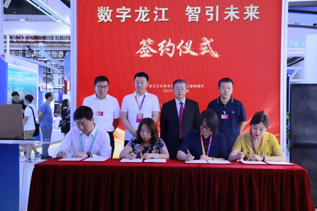近期,为期4天的2023年中国国际数字和软件服务交易会(以下简称数交会)在大连市世界博览广场举办,大会围绕“数字创新、融合开展”主题设置了会议论坛、展览展示、同期活动等内容。开幕当日,在黑龙江展区内举办了特色推介活动和签约仪式,大庆高新大数据有限公司副总经理卢杨,美高梅美高教育科技集团职业教育事业部综合管理部部长沈良代表双方出席并签约“大庆市微兆数字工坊”项目合作协议。