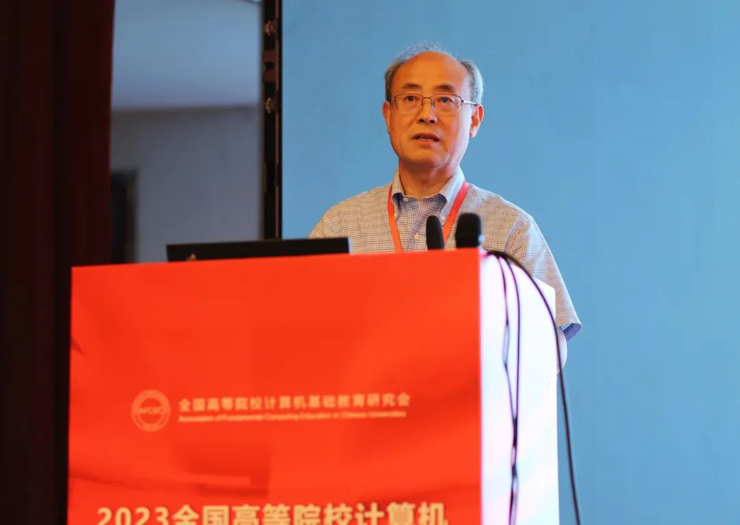Ten experts and scholars from major institutions of higher learning, scientific research institutions and enterprises in China made thematic reports on topics such as curriculum and teaching, industry-university-research cooperation, standard construction, digital transformation, and computer basic education.
