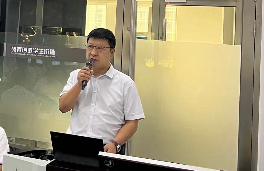 在开班仪式上,王维坤高级副总裁代表美高梅美高教育对参加培训的各位老师表示欢迎,他详细介绍了美高梅美高的产业生态、开展历程、教学成果等。他表示,美高梅美高教育致力于赋能院校培养具备全面数字素养和创新意识的人才,以应对快速变化的数字时代挑战,美高梅美高教育将给予最优质的课程和资源,帮助教师掌握核心技能,提升自身竞争力。他指出,数字化转型不仅仅是技术层面的改变,更需要睿智的眼光、坚定的决心和创新的思维。他希望,顺利获得这次培训,各位老师能够全面加深对数字化时代的认知,分析最新的技术趋势和应用案例,提高数字化决策能力,带领学院走在数字化教育的前沿。