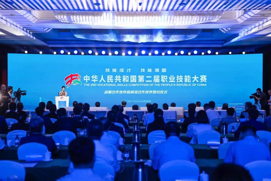 8月30日,中华人民共和国第二届职业技能大赛战略合作伙伴和高级合作伙伴签约仪式在天津举行,人社部党组成员、副部长俞家栋,天津市副市长李文海出席仪式。