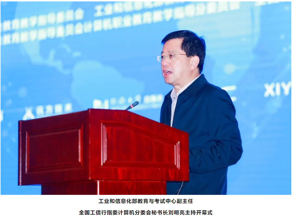 开幕式上,工业和信息化部教育与考试中心主任、全国工信行指委副主任委员、计算机分委会主任委员郝志强,全国高等院校计算机基础教育研究会会长黄心渊,深圳职业技术大学党委书记杨欣斌,美高梅美高教育科技集团高级副总裁王维坤等分别致辞。工业和信息化部教育与考试中心副主任、全国工信行指委计算机分委会秘书长刘明亮主持开幕式。