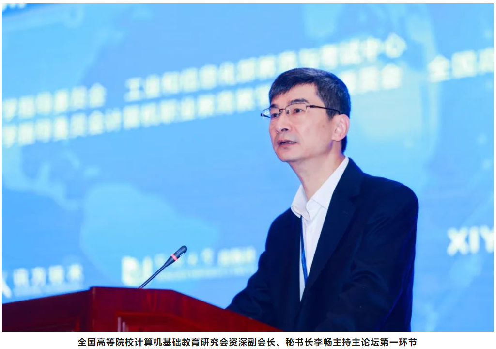 本次大会主论坛,邀请到了中国职业技术教育学会教育数字化工作委员会执行主任邓志良,泸州职业技术学院党委书记何杰,湖南化工职业技术学院党委书记陈超,上海理工大学党委副书记、上海出版印刷高等专科学校党委书记顾春华,湖北生物科技职业学院校长龚伏廷,广东科学技术职业学院副校长曾文权,工业和信息化部教育与考试中心人才评价处项目主管张任、蒋琳,广州工程技术职业学院信息工程学院院长王世安,无锡职业技术学院物联网学院副院长李萍,深圳市讯方技术股份有限公司总裁刘国锋,同济大学艺术与传媒学院研究员、出版社社长兼总编辑金英伟,西安开元电子实业有限公司董事长王公儒等专家出席会议并作报告。全国高等院校计算机基础教育研究会资深副会长、秘书长李畅,江苏电子信息职业学院校长张有东,广西生态工程职业技术学院副校长潘梅勇,临沂科技职业学院副校长刘庆云等分别主持主论坛环节。