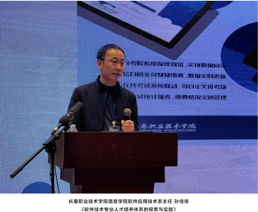 本次年会主题报告阶段,特邀通辽职业学院党委副书记、校长刘东华,黑龙江农业职业技术学院教务处处长李佼辉,长春职业技术学院信息学院软件应用技术系主任孙佳帝,辽宁省交通高等专科学校信息工程系主任金雷,美高梅美高教育科技集团职业教育事业部副总经理孙扩等作专家报告。
