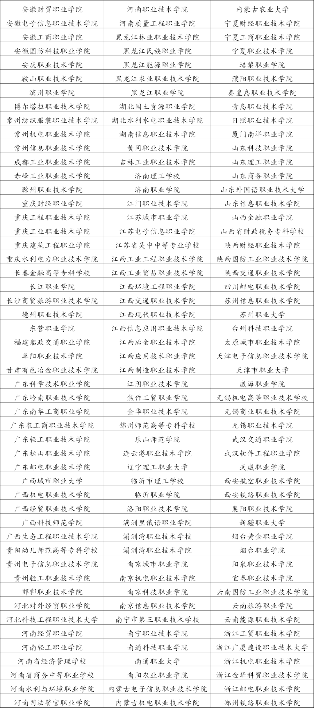 各试点院校: