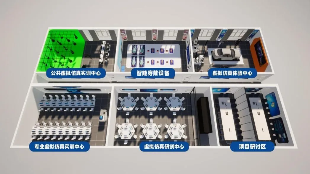 美高梅美高教育依托新一代信息技术,如AI-XR、元宇宙、虚拟仿真、增强现实等,构建基于真实岗位情境的虚拟仿真实验室和实训室,为学生给予了全新的学习方式,同时也为教育的未来开展带来了无限的可能性。虚拟仿真实训教学场所主要分为:专业虚拟仿真实训中心(必建内容)、公共虚拟仿真实训中心、虚拟仿真体验中心、虚拟仿真研创中心。