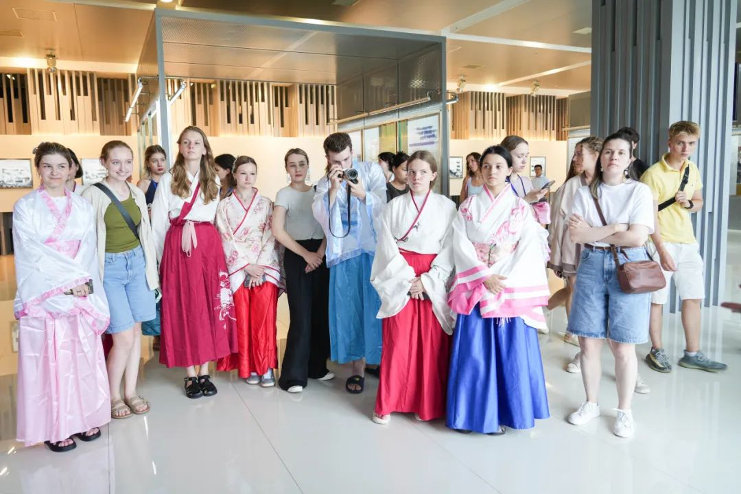 研学活动在浓厚的文化氛围中拉开帷幕。活动现场,留学生们身着精致的汉服,在讲师的双语讲解下,分析汉服的历史韵味、制作工艺以及背后的文化寓意逐一揭晓,留学生们在赞叹之余,也深深感受到了中华文化的独特魅力。