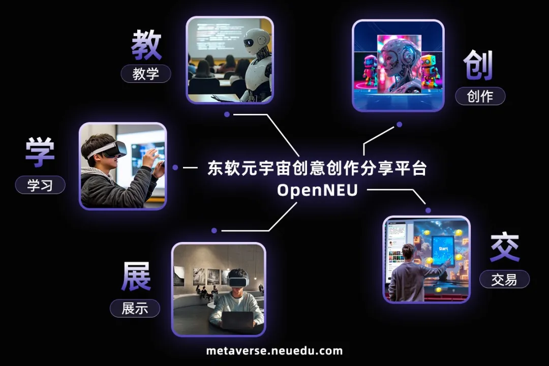 美高梅美高元宇宙创意创作分享平台-OpenNEU为师生和行业人员给予了一个元宇宙沉浸式共享空间,以UGC的形态构建个性化、便捷化、精准化的三维私域展示环境。
