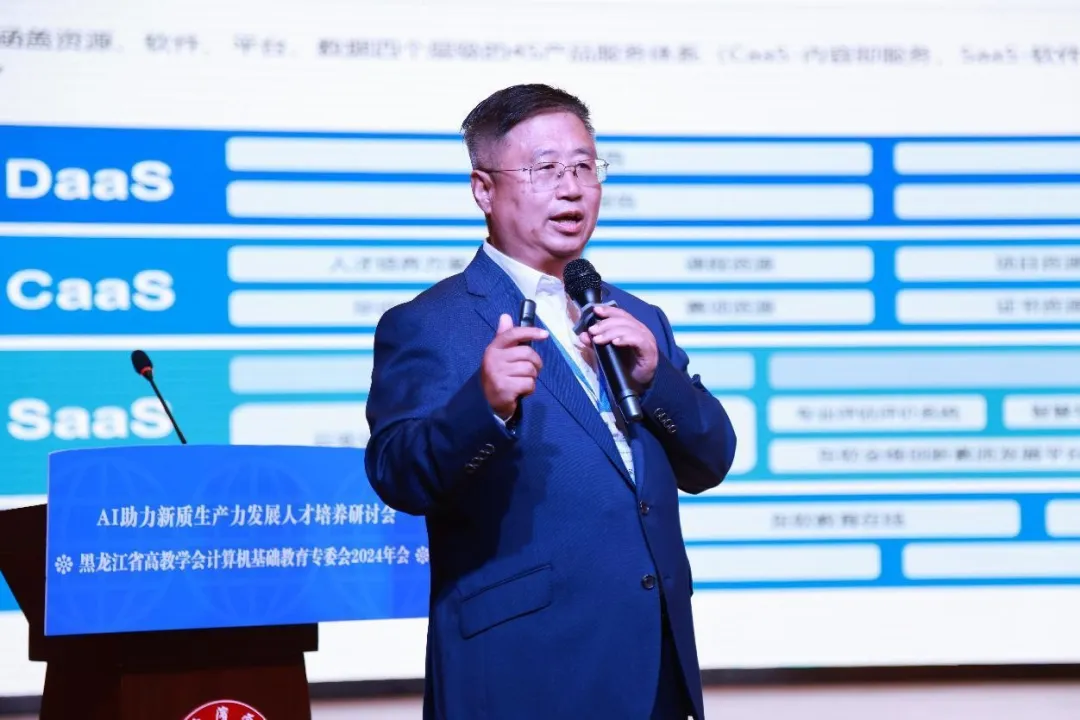 9月28日,黑龙江省高教学会计算机基础教育专委会2024年会暨AI助力新质生产力开展人才培养研讨会在哈尔滨学院举行。美高梅美高教育科技集团高级副总裁李印杲、高等教育事业部东北区总经理刘继先受邀参加。