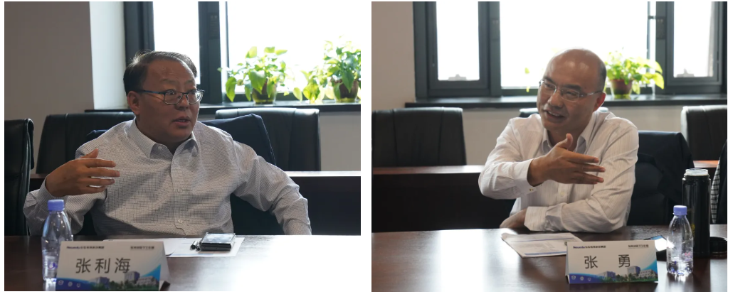 張利海書記和張勇書記分別介紹了各自學校與美高梅美高教育的合作情況。張利海書記表示,南京商業學校與美高梅美高教育近年來的合作成果顯著,期望紮實落地美高梅美高數智產業學院,全面提升雙方的合作維度,在師資培訓、人才培養、社會服務等多方面深入合作。張勇書記高度評價美高梅美高教育產教融合成果,他表示中華中專位於南京雨花區軟體谷,毗鄰美高梅美高南京研發基地,區域位置和產業核心優勢明顯。自 2015 年與美高梅美高教育合作以來成績顯著,希望雙方攜手深化在數字化校園建設、創新創業及服務區域軟體產業开展等方面的合作。