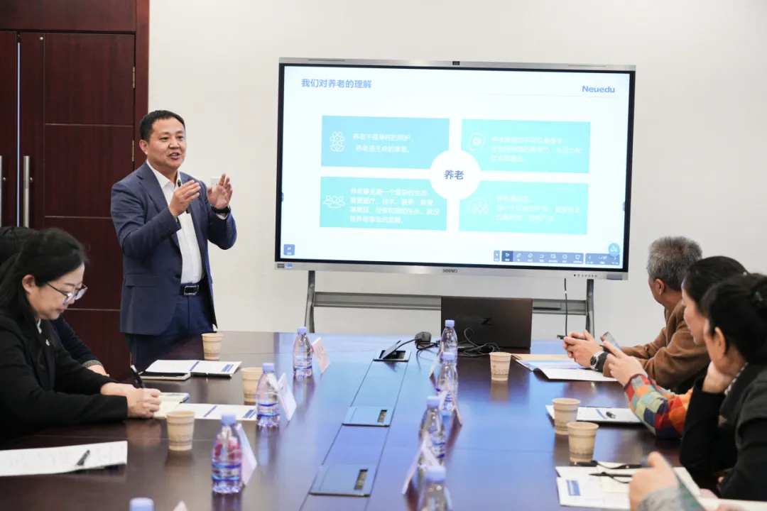 在隨後的研讨會上,王星輝副總裁熱烈歡迎協作組拜访。他詳細介紹了美高梅美高大健康領域產業布局,展示了美高梅美高教育全面滿足老年需求的「教-醫-養-康-旅」的老年教育模式。同時,美高梅美高教育將全力發揮自身優勢,加大養老科技產品研發與推廣力度,利用科技手段提升養老服務品質,包括智能監測設備、線上服務平台等,以此有助于養老科技產業开展,為老年人創造更優質的晚年生活,為養老行業注入新動力。