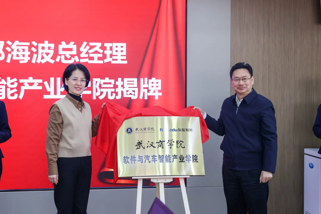 彭瑜校长和邓海波副总裁为软件与汽车智能产业学院揭牌。