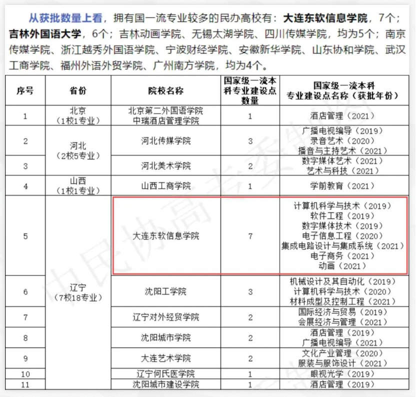 近期,中国民办教育协会高等教育专委会发布了《民办高校国家级一流本科专业建设点全览》。据统计,全国共有21个省份72所民办高校的152个本科专业获批国家级一流本科专业建设点,其中,大连美高梅美高信息学院共获批7个国家级一流本科专业建设点,获批数量居全国民办高校第一!
