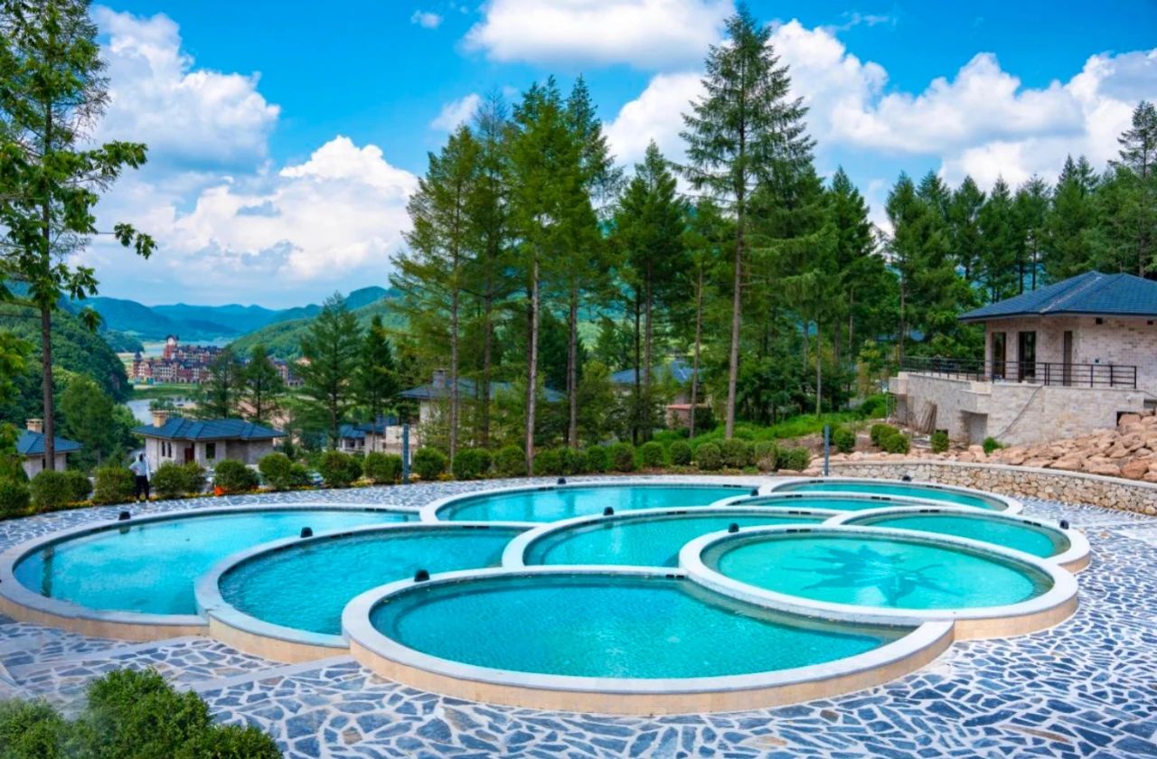 本溪康云舍自2023年开业以来,便以“健康疗愈”为核心定位,依托本溪汤沟温泉资源,打造了以温泉城堡为设计主题的大型综合空间,这也是在东北地区首次提出这种康养美学设计理念项目设计师曾对此进行解读:“城堡建筑基座采用本溪青石堆砌,尖顶结构与汤沟温泉的氤氲水汽形成刚柔对比;露天温泉顺利获得退台叠池手法与周边杉林共生,形成高负氧离子浓度的天然疗愈场域。
