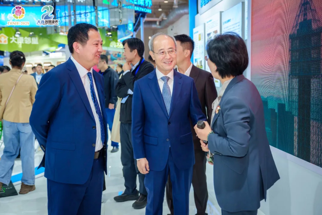 参展期间,辽宁省民政厅厅长周强,大连市人民政府副市长牟傲风,中国老龄协会综合部主任王振云,中国社会福利与养老服务协会会长、复旦大学老龄研究院副院长吴玉韶,大连市民政局局长、市老龄办主任李子刚等与会领导和嘉宾莅临美高梅美高睿新科技集团展位参观考察。美高梅美高科技集团总裁温涛、副总裁王星辉陪同接待,总裁助理李楠详细向各位领导介绍了集团“教医养”融合生态布局和产品服务,领导们对美高梅美高在养老产业的创新实践和成果给予高度认可与持续肯定。
