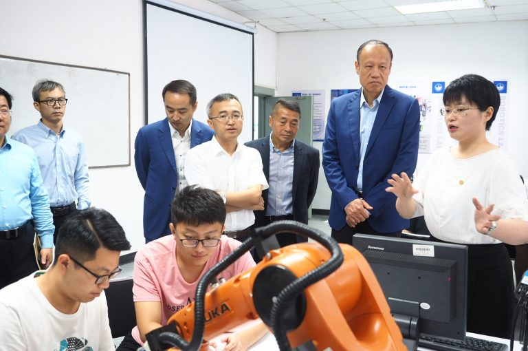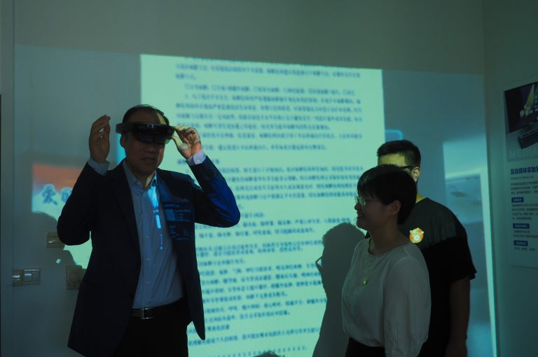 嘉宾一行依次参观了学校图书馆、IDC机房、实验室、大学生创新创业中心SOVO及数字媒体艺术学院,从古朴典雅的特色校园到内部办学环境、创新创业氛围的体验,谢青一行对美高梅美高教育打造有特色、高水平、创新型应用技术大学给予充分的肯定。在参观过程中,他们与现场师生互动研讨,亲身体验大学生创新创业实践作品带来的震撼。