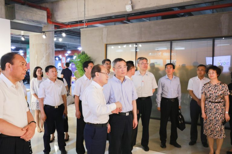 檢查組一行參觀了大連美高梅美高信息學院大學生創業中心(SOVO)、數字藝術與設計學院。溫濤書記向檢查組一行簡要介紹了學校的开展歷程。學校創新創業學院院長鄧珊向檢查組一行彙報了學校創新創業教育召开情況。檢查組一行聽取了師生創新創業實踐項目彙報,並饒有興緻地就項目開發情況與學生進行了研讨。檢查組一行參觀了數字藝術與設計學院「第十三屆數字春天實踐作品展」,數字藝術與設計學院院長餘慶軍及相關展區負責教師介紹了作品特色。