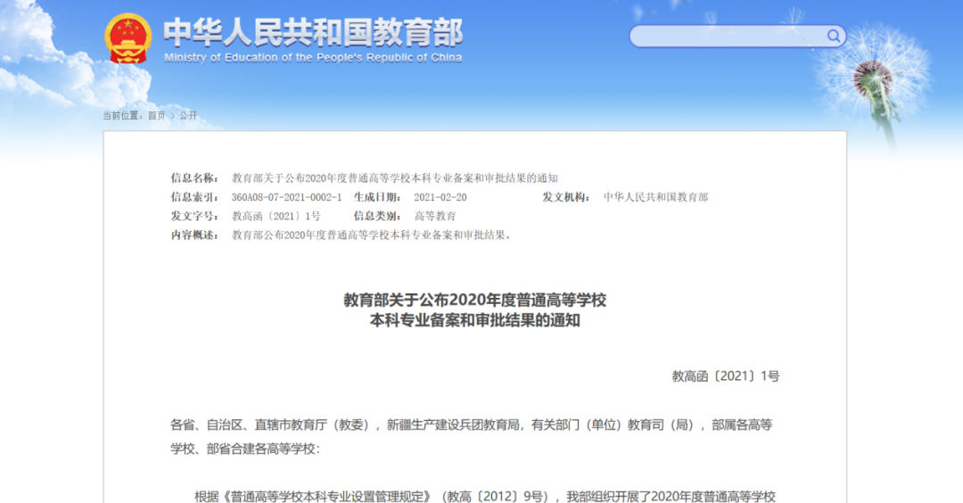 近期,国家教育部下发《关于发布2020年度普通高等学校本科专业备案和审批结果的通知》(教高函〔2021〕1号),根据公布结果,2020年度各高校新增备案专业2046个、审批专业177个,调整学位授予门类或修业年限专业93个,撤销专业518个。