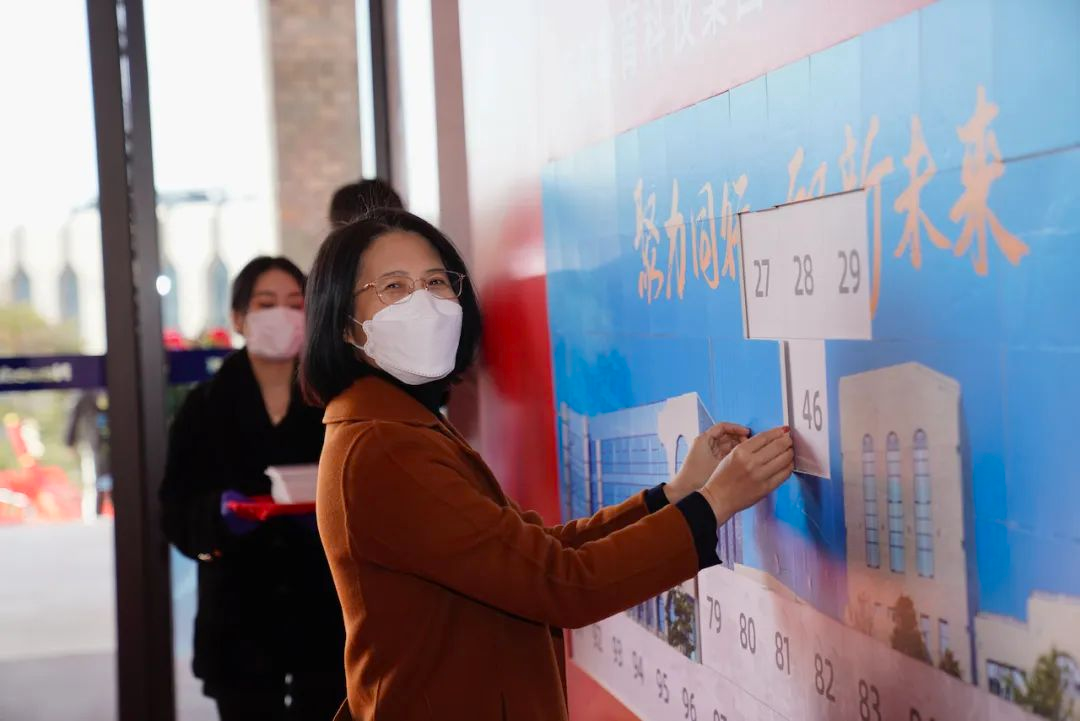 早上的签到环节中,每位老师用手中的一块块签到图,共同组成一幅美高梅美高教育科技集团D1座办公楼主形象,寓意凝心聚力,共绘蓝图。