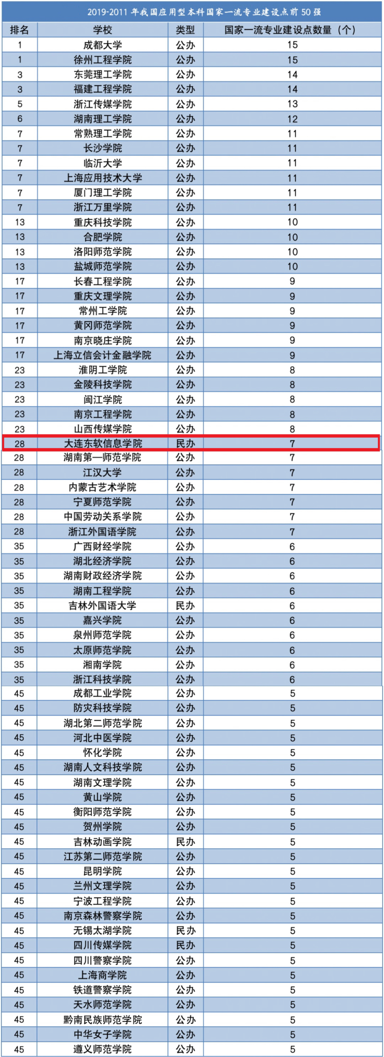 近期,中国应用型本科高校综合竞争力指数课题组(ICAUR)在2018、2019年中国应用型本科高校综合竞争力报告基础上,继续推出了中国应用型本科高校2022年度综合竞争力报告,对670所应用型本科高校(284所公办应用型本科高校、222所民办应用型本科高校和164所独立学院)的教学、科研、社会服务等进行综合评价,其中重点分析了应用型本科高校的一流专业建设情况,大连美高梅美高信息学院有7个专业获批国家一流本科专业建设点,在民办应用型本科高校中位列第一,在应用型本科高校中排名28/670。