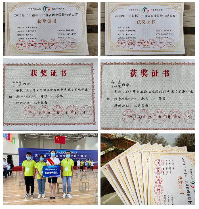美高梅美高信息产业学院在省教育厅、省人力资源和社会保障厅、省财政厅、省卫生健康委员会、省总工会、甘肃中华职教社6部门联合举办的2023年“中银杯”甘肃省职业院校技能大赛中共取得10项大奖,其中包括: