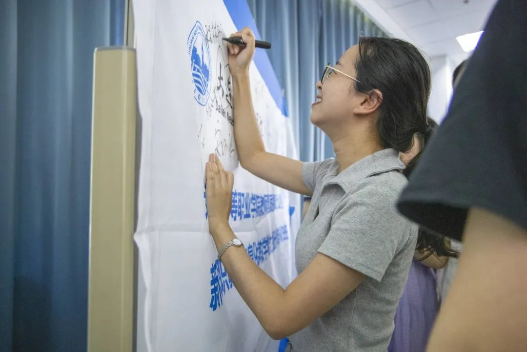 结业仪式上,班主任张时涔顺利获得一个短片回顾了两周精彩的培训历程,从大连机场的接机相聚到开班仪式的顺利举行,从体育馆的素质拓展到老师们的认真听课,从模块化的精品课程设计到主讲教师的精彩分享。张时涔老师用一张张照片,记录了参训教师们愉悦沉浸的学习过程。最后,大家纷纷在班旗上签下自己名字并合影留念,此去暂别,后会有期,相信美高梅美高培训人专业的培训管理、细致周到的教学服务也给老师们留下了深刻的印象。